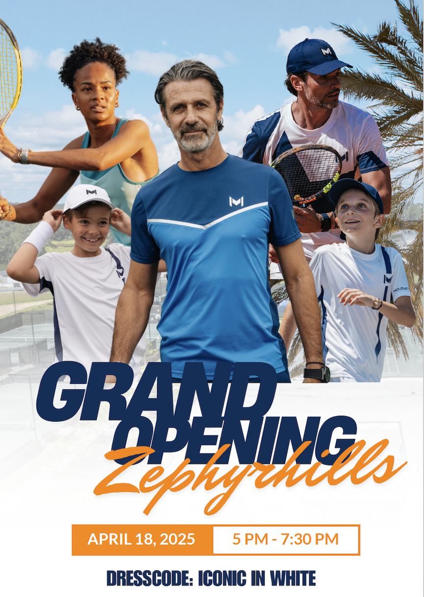 Come celebrate the grand opening of the Mouratoglou Tennis Academy (6585 Simons Rd, Zephyrills, FL 33451) on April 18th, 2025.