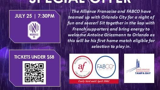 The Alliance Française of Greater Orlando, FABCO and FRAMCO are teaming up for an unforgettable evening to welcome football superstar Antoine Griezmann to Orlando City!